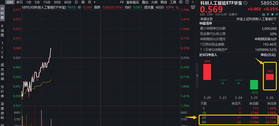 ]article_adlist_manual-->周五(3月27日)要点布局国产AI产业链的科创东说念主工智能ETF华宝(589520)从水面下快速拉升,场内价钱现涨0.35%,值得关心的是,该ETF昨天单日吸金343万元,拉长本事来看,近20日累计狂揽7684万元,反应资金看好国产AI赛说念后市进展,提前进场埋伏!