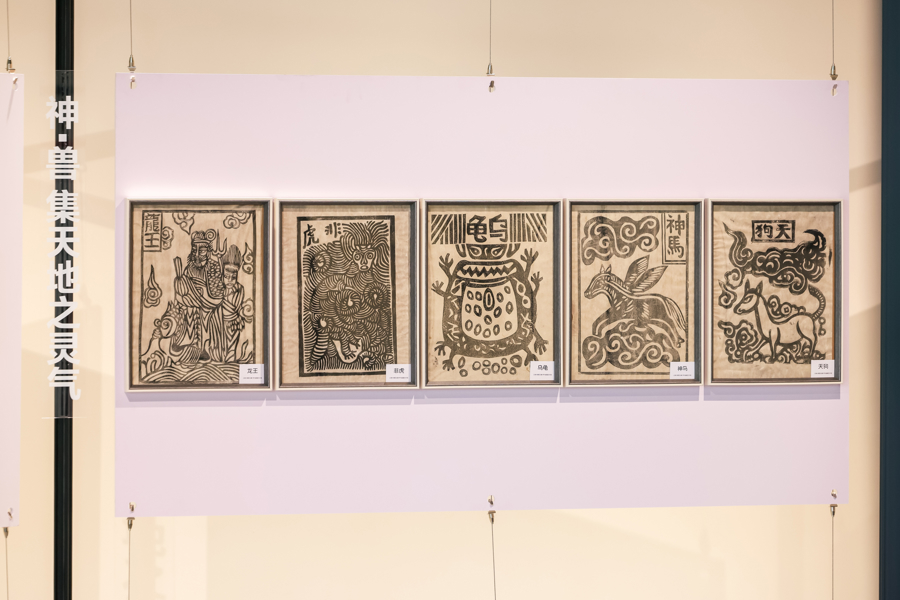 本次展览分为“祈愿的印记:甲马中的精神图谱”与“在地的对话:奉贤版画创作实践”两大板块,系统展示两地版画的艺术特色与文化内涵。大理甲马版画源于唐代,以木刻拓印“甲马纸”,图案涵盖神祇、自然万物与生活场景,被誉为“人与神的信使”,常用于祈福、祭祀,承载着白族人民对平安、丰收、健康的美好寄托。奉贤版画则扎根江南文化,融合现代创作语言,以细腻的刀工、丰富的构图展现滨海新城的时代风貌与人文情怀。