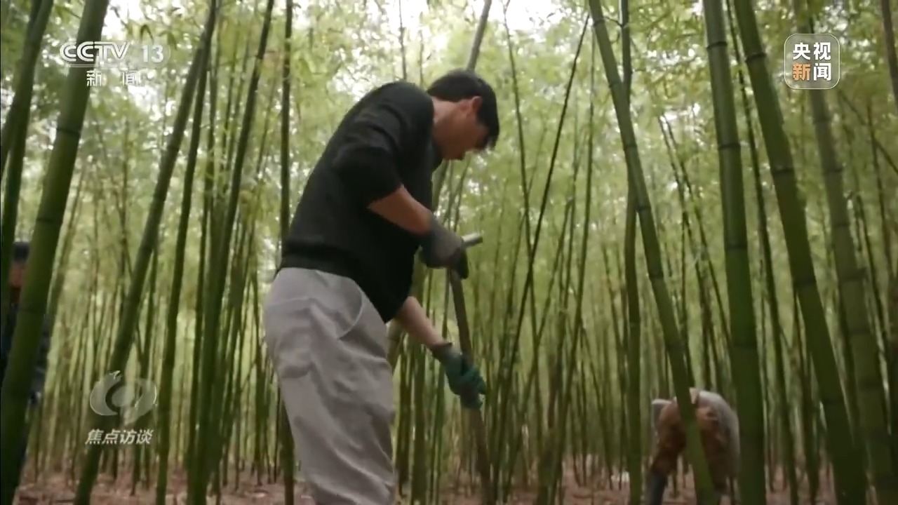 张辉,本年39岁,是周坊镇返乡创业的东说念主里,第一个作念腹地特质农家具的。记者来到他的雷竹基地时,他正带着村民在竹林里努力。