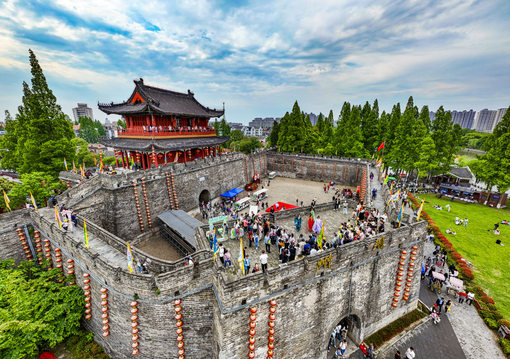 市民旅客登上荆州古城,感受古城文化魔力。(张梦瑶 摄)