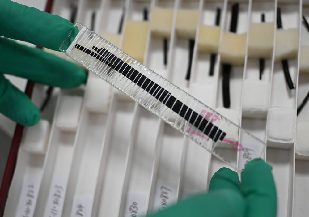 荆州文物保护中心简牍责任室责任主谈主员处理竹简残片。新华社记者 程敏 摄