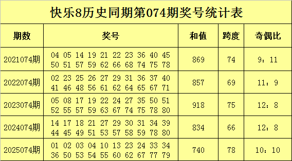 奇偶比分析:旧年第074期奖号奇偶比为10:10,历史同时第074期奖号奇偶总比例为54:46,奇数号码推崇较热,本年第074期预测奇偶号码推崇与表面基本格外,保举奇偶比10:10。