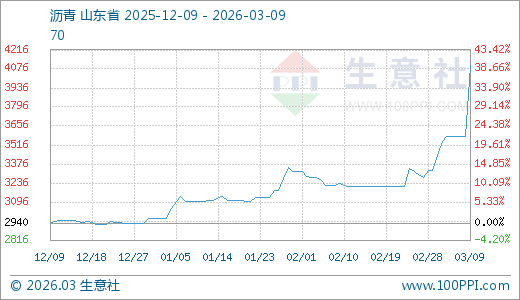 据贸易社监测,沥青03月09日最新价钱4100.00元/吨,最近5天高潮14.53%,10天高潮25.00%,15天高潮27.73%,60天高潮32.26%。