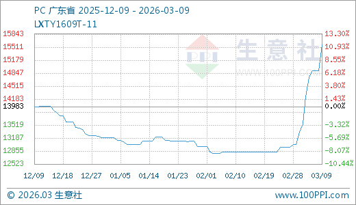 据交易社监测,PC03月09日最新价钱15566.67元/吨,最近5天高潮9.24%,10天高潮20.11%,15天高潮21.27%。