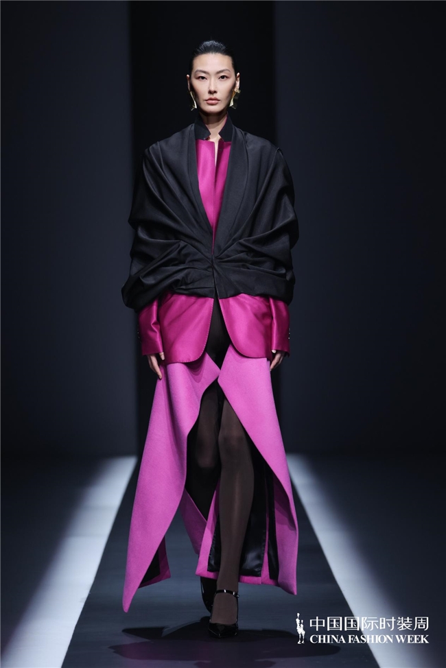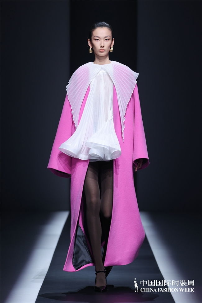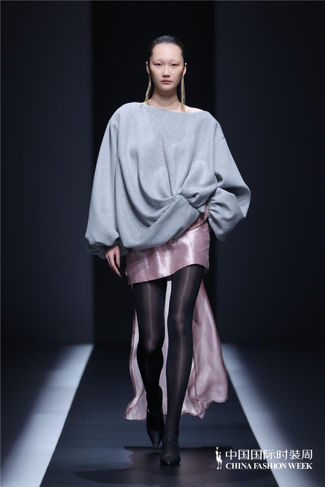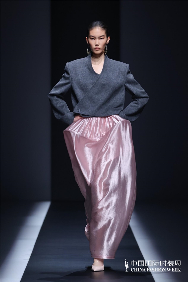 秀场之上,灯光渐亮、旋律奏响,模特身着玫粉色长款大衣,搭配压褶工艺打造的白色花瓣裙优雅登场,将“我”对寰宇当先的懵懂感知,悄然藏于衣物肌理之中;跟着旋律饱读点逐步加剧,标记着成长历程的股东,服装色调从明艳浓烈的玫粉,渐变为低调内敛的炭灰、中灰与浅灰蓝。颈部缠绕的线条、肩部利落的空洞、胯部扩展的结构、衣身斜向交错的剪裁,天真勾画出成长路上和谐与冲突共生的情状;最终,以克制千里稳的酒红色调、舒展镇静的服装造型,呈现出当下“我”对寰宇的锻真金不怕火贯通与全新感知。此外,缱绻师宋双以特有的缱绻话语,再行演绎16世纪拉夫领与中叶纪欧洲裙撑经典元素,协调建筑好意思学结构性情,亨达配资打造出极具空气感的造型,成为秀场一大亮点。