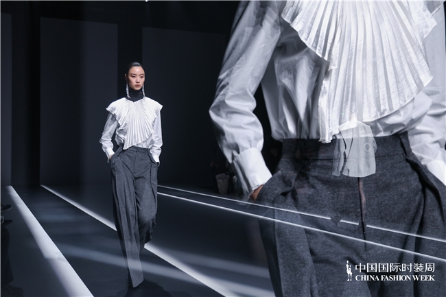 本次发布会主题“礼貌下的自我”,源于缱绻师宋双对自我成长历程的贯通,系列作品以“我”为中枢,将服装算作展现个东说念主成长轨迹的弁言,缱绻师本东说念主成长经过的神气波动,随服装节律,徐徐展现。