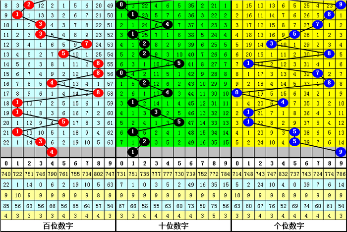 个位:上期为5,质号,合号最近两周相对走冷,遗漏4次,本期宥恕合号,参考9。