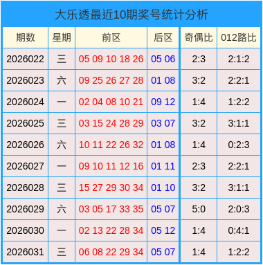大乐透最近10期分析